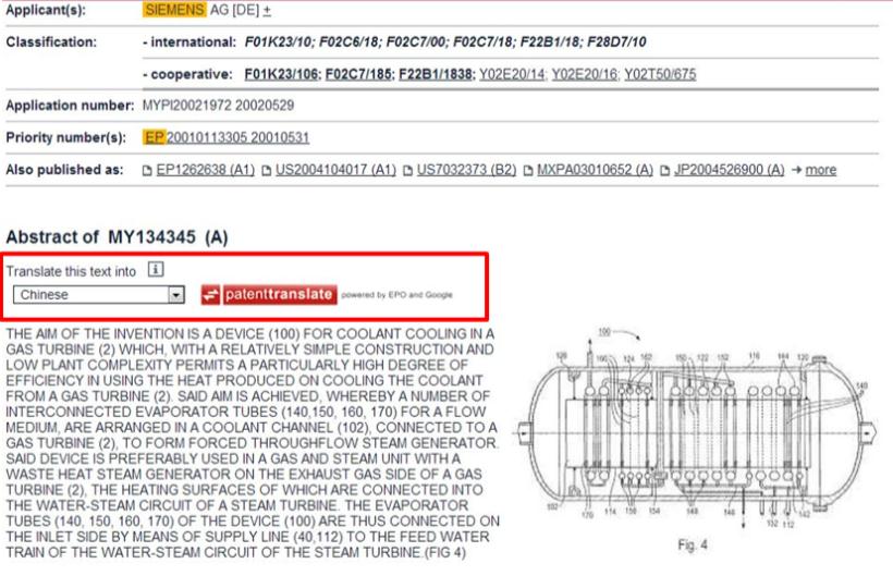 目前 EPO 專利資料庫收錄 400 萬筆全文的中文專利文件,都可以透過 Espacenet 檢索取得,並利用 Patent Translate 服務翻譯成英文。當然,為數更多的英文專利文件,也可以透過同樣方式取得以及翻譯成中文。EPO 目前僅提供簡體中文服務,台灣的使用者只要習慣兩岸用語的差異,相信也可以獲得不少幫助。