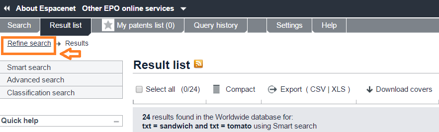 出現結果清單後,再按一下頁面左上角的 Refine search,回到簡易檢索畫面。