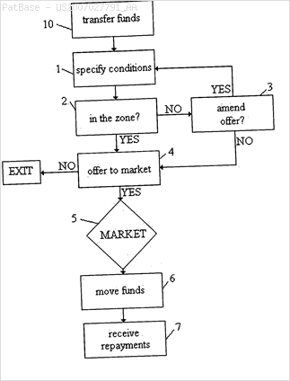 筆者發現 Zopa它於2005就在美國提出一篇US2007027791A「METHOD OF AND APPARATUS FOR MATCHING LENDERS OF MONEY WITH BORROWERS OF MONEY / 匹配貸款人與借款人的方法和装置」專利申請。在這篇專利當提出個人貸款方可以創建一個帳戶設定當個人貸款方符合特定的條件屬性(投報率)他才願意借錢。借款人可以在系統上詢問貸款的報價(利息)。如果借款人及個人貸款者的條件匹配,系統就創建一個可能的貸款。而這種模式正是ZOPA(Zone of Possible Agreement)所代表的意義。但很不幸的(至少對ZOPA而言),這篇專利最後在一次OA之後因為沒有在期限內進行答辯,而沒有取得專利權。