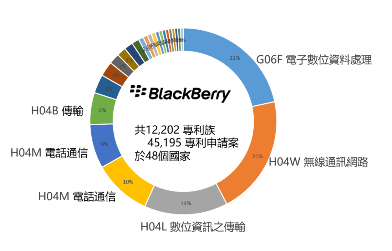 圖說: 黑莓 BlackBerry 專利資產分析(按IPC技術分類)