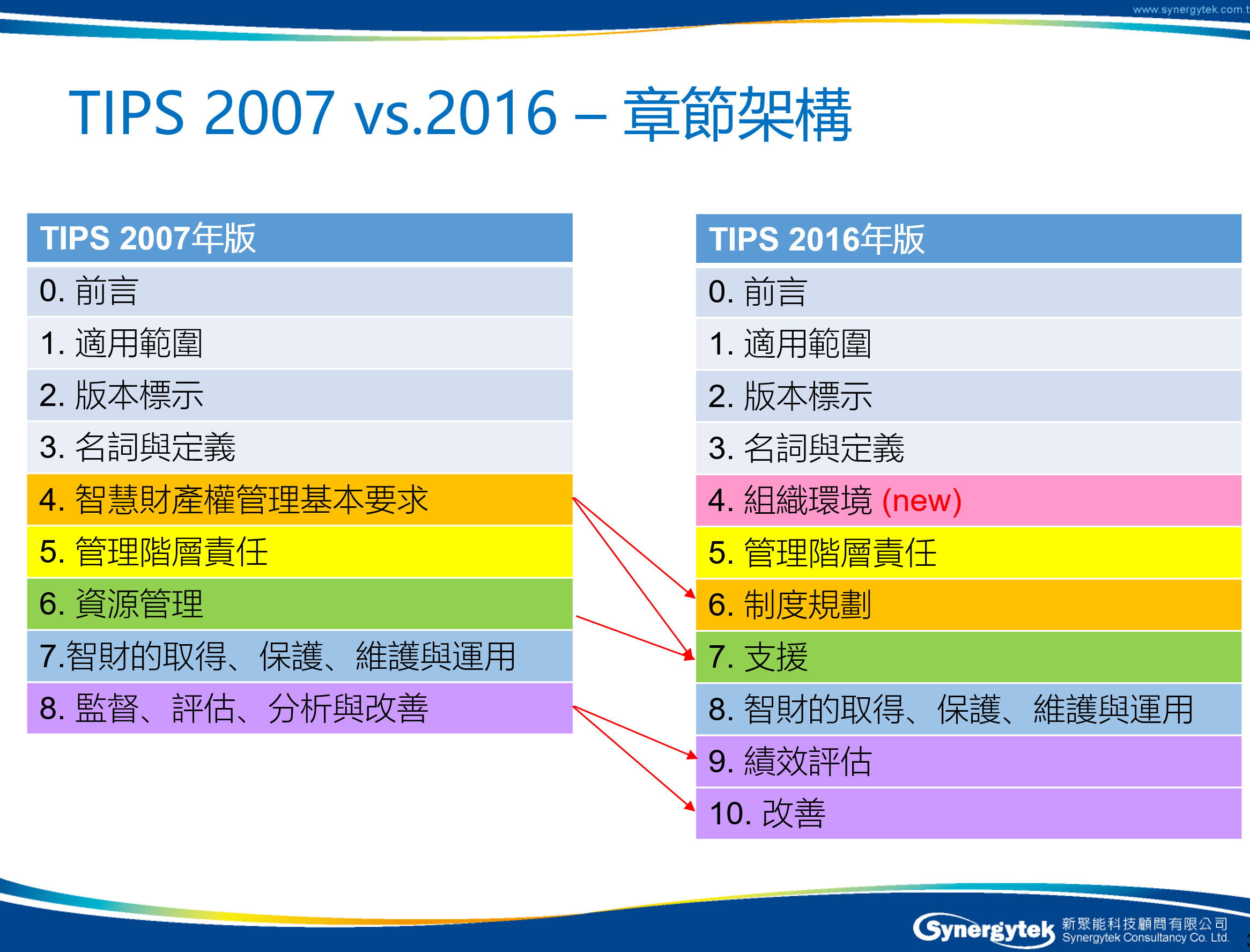 而新聚能應該做的是累積自己的專業,去協助那些知道如何運用有經驗的外部顧問來達成最大成效的優質企業。而拿到政府補助,只是額外的Bonus而已。很榮幸,在過去的服務經驗當中,我們的確協助一些優質企業建置導入TIPS的制度,改善其生產、銷售、人力資源、研發及財務流程中涉及智慧財產權取得、保護及運用的制度,並取得TIPS驗證。
