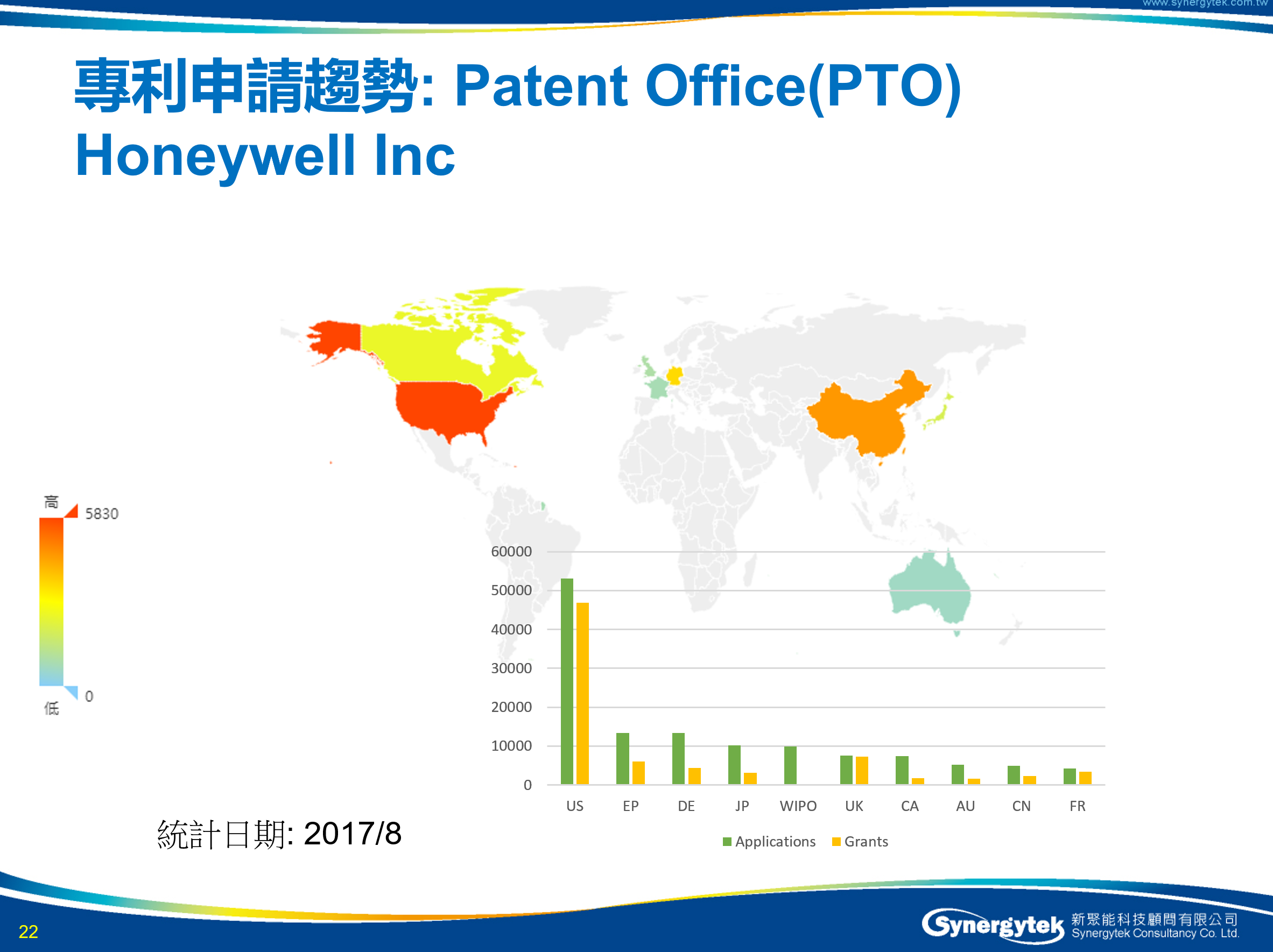 圖說: Honeywell的全球專利佈局狀況