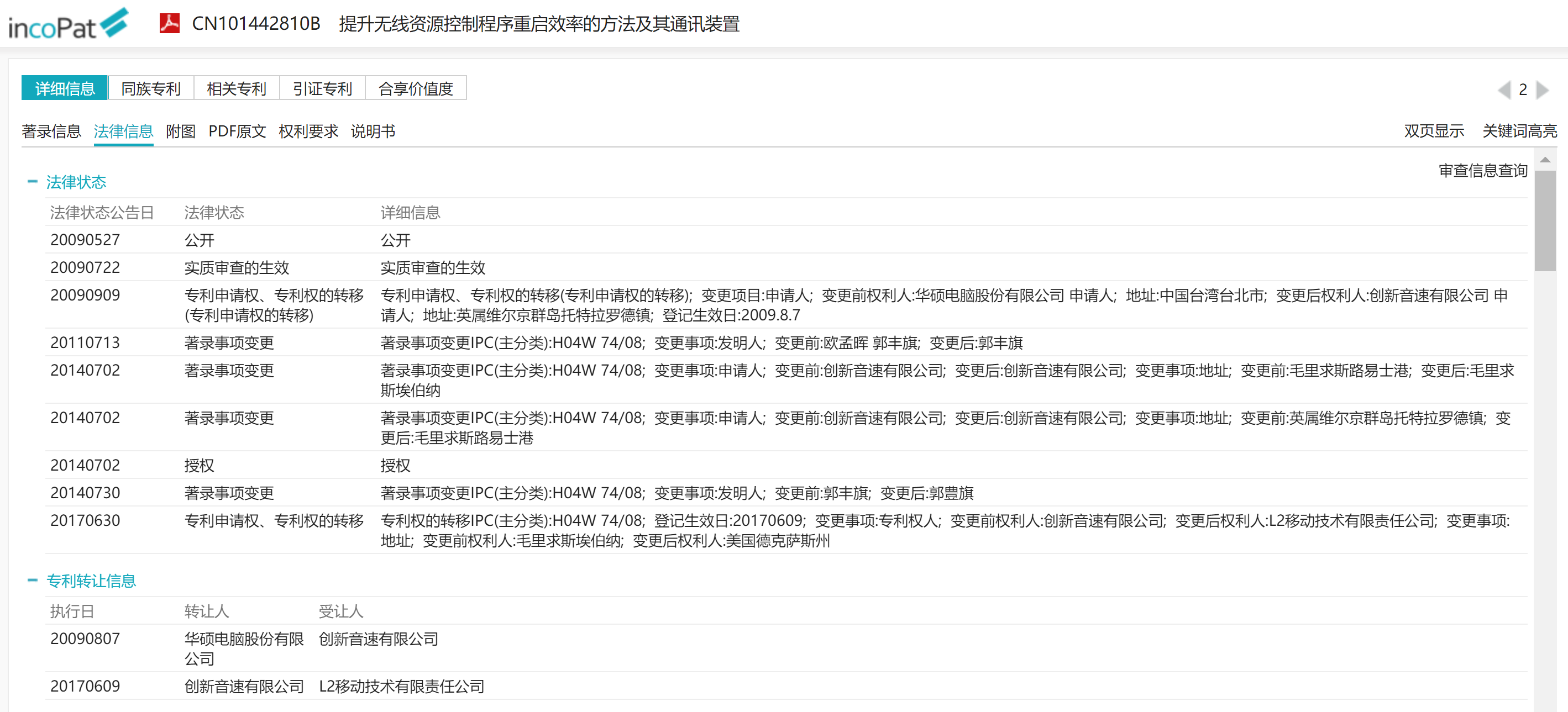 圖說:CN101442810 法律狀態與轉讓信息