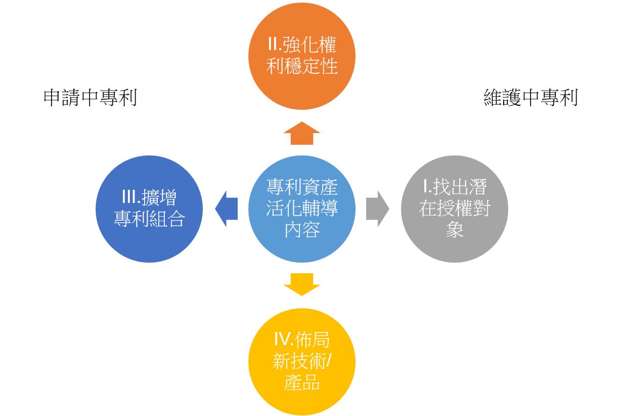 - 策略性專利申請:隨著貨幣化計畫的演進與專利組合的成熟,開始進入策略性專利申請階段,可以確保專利確實適合並能支持貨幣化計畫