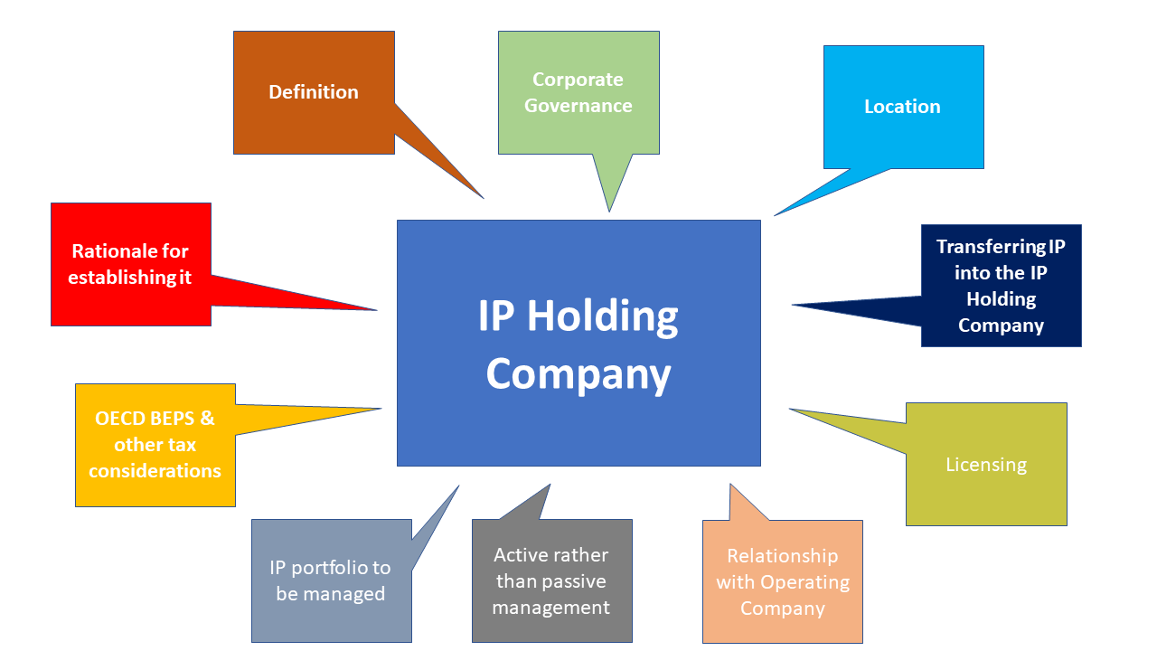 智慧財產權控股公司(IP Holding Comapny)的用途是為一個或多個公司持有智慧財產權,但不一定會生產製造該智慧財產之產品或以之提供服務。在成立智慧財產權控股公司前,最重要的是了解以下問題: